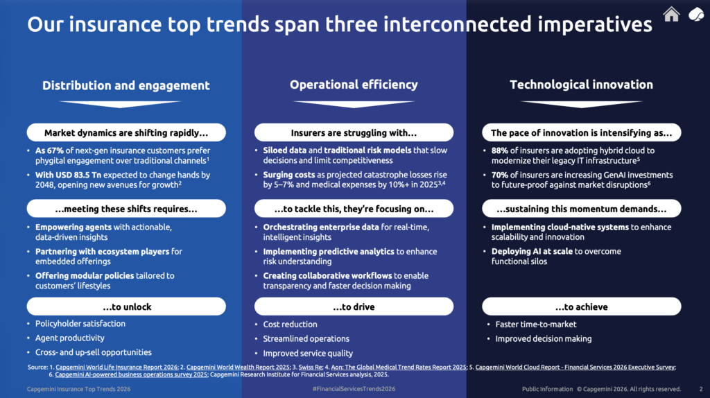 O setor de seguros entra em 2026 pressionado por mudanças profundas no comportamento do cliente, aumento da complexidade operacional, riscos climáticos crescentes e aceleração tecnológica. Para permanecerem competitivas, as seguradoras precisam evoluir de modelos tradicionais, centrados em produto e eficiência isolada, para ecossistemas digitais orientados por dados, valor e experiência do cliente.